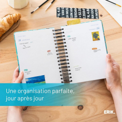 Agenda escolar de 12 meses: de agosto de 2025 a julio de 2026, con un día por página. Mide 14,8x21cm. Incluye tapa dura, encuadernación wire-o con goma elástica, interior personalizado, 2 páginas de pegatinas personalizadas, 2 marcapáginas de cartón personalizados y una funda de cartón. Contiene 388 páginas de 100 g/m². Idioma: inglés.