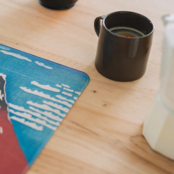 Alfombrilla de escritorio Erik, Katsushika Hokusai, Fuji Rojo. Protector de escritorio de superficie textil de alta densidad, óptima para un uso intensivo, preciso con cualquier tipo de ratón e impermeable. Bordes reforzados y base de goma antideslizante. Dimensiones: 60x35cm.