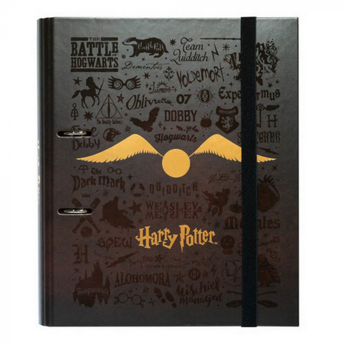 Carpeta 2 anillas Erik Harry Potter. Tapa dura forrada con papel laminado en mate. Interior personalizado acorde al diseño. 28x32cm.