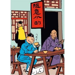 Dossier con uñero A4 de Tintín: El loto azul, la escena del almuerzo. Dimensiones: 22x30cm.