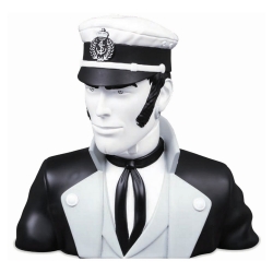 Busto de resina policromada de Corto Maltés con certificado de autenticidad. Pintado a mano. Versión en color. Altura: 23cm