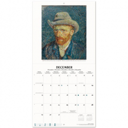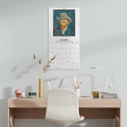 Calendario de pared Erik Vincent van Gogh 2025. Encuadernación con grapa, incluye 12 imágenes en su interior y agujero de 5mm para colgar en la pared. Incluye poster. Papel de 250g y laminado brillo en la cubierta e interior de 150g. Dimensiones: 30x30cm. 6 idiomas: inglés, español, francés, alemán, italiano y portugués. 12 meses de enero a diciembre de 2025.