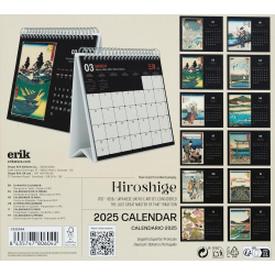 Calendario de sobremesa Erik, Utagawa Hiroshige 2025. Encuadernación con grapa, incluye 12 imágenes en su interior. Papel de 300g y laminado brillo en la cubierta e interior de 150g. Dimensiones: 20x17cm. 6 idiomas: inglés, español, francés, alemán, italiano y portugués.
