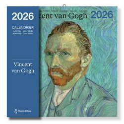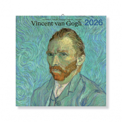 Calendario de pared Vincent van Gogh 2026. Fabricado en Francia en papel estucado de calidad. Dimensiones: 30x30cm. 5 idiomas: inglés, español, francés, alemán e italiano. 12 meses de enero a diciembre de 2026.