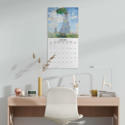 Calendario de pared Erik Claude Monet 2026. Encuadernación con grapa, incluye 12 imágenes en su interior y agujero de 5mm para colgar en la pared. Incluye poster. Papel de 250g y laminado brillo en la cubierta e interior de 150g. Dimensiones: 30x30cm. 6 idiomas: inglés, español, francés, alemán, italiano y portugués. 12 meses de enero a diciembre de 2026.
