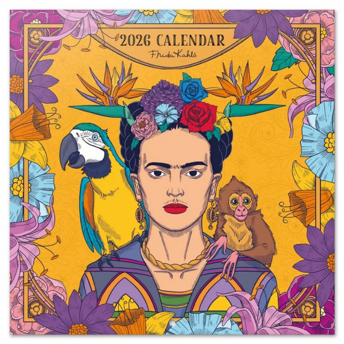 Calendario de pared Erik, Frida Kahlo 2026. Encuadernación con grapa, incluye 16 imágenes en su interior y agujero de 5mm para colgar en la pared. Incluye poster. Papel de 250g y laminado brillo en la cubierta e interior de 150g. Dimensiones: 30x30cm. 6 idiomas: inglés, español, francés, alemán, italiano y portugués. 12 meses de enero a diciembre de 2026.