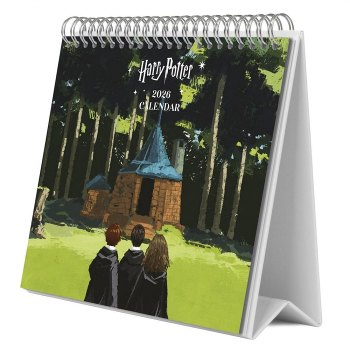 Calendario de sobremesa Erik, Harry Potter 2026. Encuadernación con grapa, incluye 12 imágenes en su interior. Papel de 250g y laminado brillo en la cubierta e interior de 150g. Dimensiones: 20x17cm. 6 idiomas: inglés, español, francés, alemán, italiano y portugués.