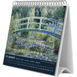 Calendario de sobremesa Erik, Claude Monet 2026. Encuadernación con grapa, incluye 12 imágenes en su interior. Papel de 300g y laminado brillo en la cubierta e interior de 150g. Dimensiones: 20x17cm. 6 idiomas: inglés, español, francés, alemán, italiano y portugués.