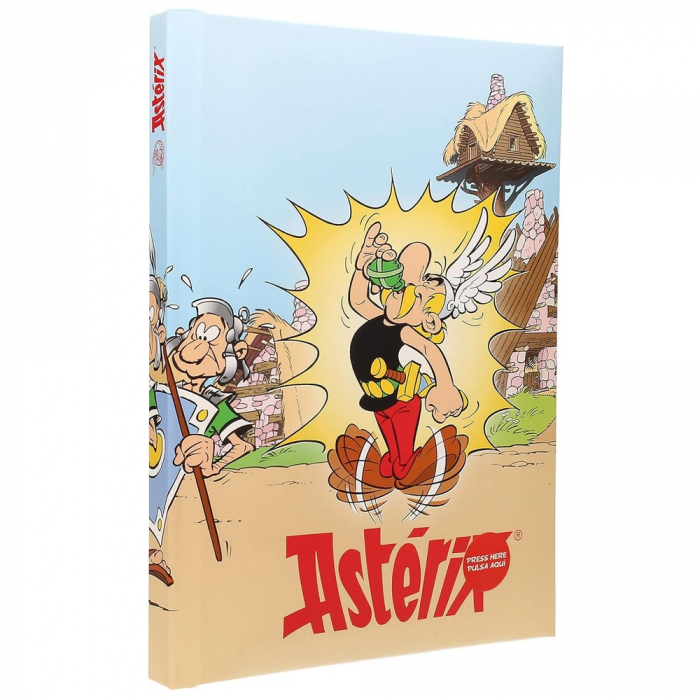 Las icónicas libretas con luz de SD Toys llegan ahora ilustradas con los personajes y las escenas más representativos de las historias de Astérix, de René Goscinny y Albert Uderzo. El mecanismo se activa al pulsar el botón ubicado en la portada y finaliza a los pocos segundos o al volver a presionar. Serás el más original de toda la Galia. 25x15x3cm.