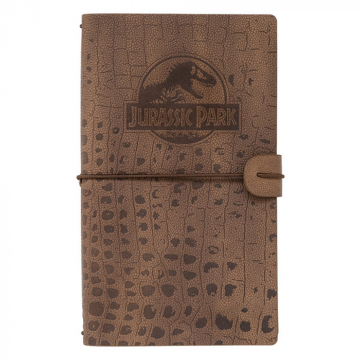 Bloc de notas, cuaderno de viaje Erik, Jurassic Park. Tapa blanda de cuero sintético y banda elástica para cerrarlo. Cubiertas interiores con diseño personalizado. Dimensiones: 12x19,5cm.