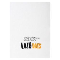 Cuaderno / Libreta Erik, Peanuts Snoopy. Presenta una cubierta de tela en peluche con diseño bordado, interior personalizado, esquinas cuadradas, encuadernación encolada, bolsillo y marcapáginas de cinta. Incluye 96 hojas (192 páginas) de 100 g/m². Dimensiones: 19x23,8cm.