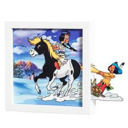 Fiel y divertida reproducción de una imagen del cómic de Yakari, Pequeño Trueno. Funky Frames. Dimensiones: 15x15cm. Marco de madera.