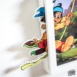 Fiel y divertida reproducción de una imagen del cómic de Yakari, Ballati. Funky Frames. Dimensiones: 15x15cm. Marco de madera.