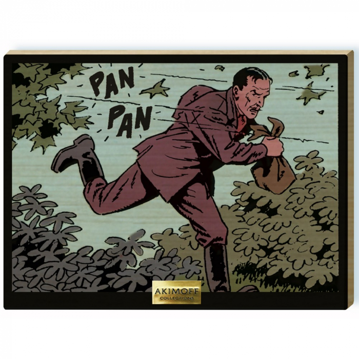 Cuadro de madera de arce del fabricante Akimoff, Blake y Mortimer del álbum El caso del collar: Olrik Fonce. Serie limitada a 59 ejemplares y numerada a mano de 1 a 59.