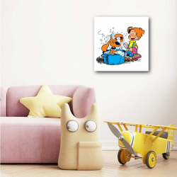 Reproducción fiel del cómic Bill y Bolita, obra de Jean Roba: El baño. Lienzo Premium Fine Art de polialgodón de 350g/m2. 100% Hecho en Francia.
