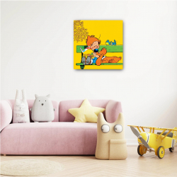 Reproducción fiel del cómic Bill y Bolita, obra de Jean Roba: La lectura. Lienzo Premium Fine Art de polialgodón de 350g/m2. 100% Hecho en Francia.