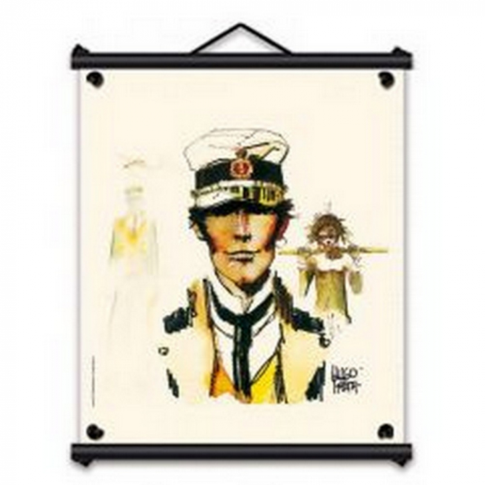 Póster sobre lienzo de algodón Corto Maltés, Etiopía. Incluye un cordón para poder colgarlo en la pared. Soporte en madera, la cuerda es de color cáñamo. Entregado en bolsa de lona con el visual del panel. Hecho a mano en Francia. Dimensiones 40x45cm.