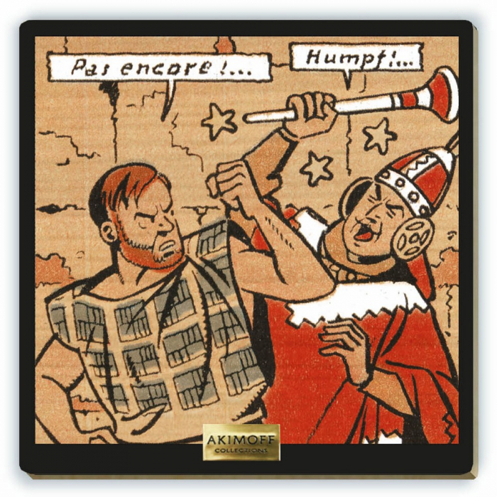 Cuadro de madera de arce del fabricante Akimoff, inspirado en El enigma de la Atlántida, versión original publicada en el Diario Tintín del 19 de octubre de 1955 al 19 de diciembre de 1956. Blake y Mortimer del álbum El Enigma de la Atlántida: Pas, encore ! Serie limitada a 59 ejemplares y numerada a mano de 1 a 59.