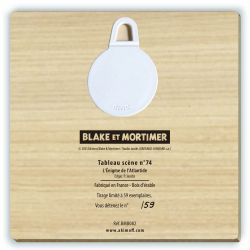 Cuadro de madera de arce del fabricante Akimoff, inspirado en El enigma de la Atlántida, versión original publicada en el Diario Tintín del 19 de octubre de 1955 al 19 de diciembre de 1956. Blake y Mortimer del álbum El Enigma de la Atlántida: Los Esferas. Serie limitada a 59 ejemplares y numerada a mano de 1 a 59.