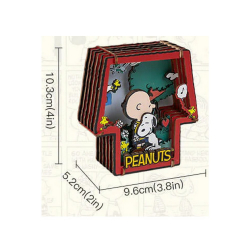 Diorama 3D a montar en madera Peanuts, Snoopy: Abrazo, está inspirado en la obra de Charles M. Schulz y fue creado por Pantasy. La edad mínima recomendada es de 6 años. Incluye un manual de instrucciones. Altura: 10,3cm.