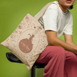 Bolsa de tela El Principito sentado en su planeta. Dimensiones: 37x2x43cm.