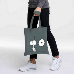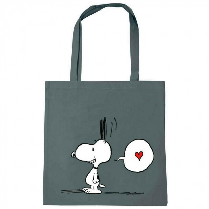 Bolsa de algodón Logoshirt® Peanuts, Snoopy: corazón Gris. La bolsa cuenta con la certificación Oeko-Tex® STANDARD 100 y está hecha 100 % de algodón duradero y de alta calidad. Dimensiones: 38x42cm.