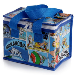 Fiambrera Isotérmica de plástico reciclado de colección Astérix y Obélix: Tira Cómica. El interior es de aluminio mientras que el exterior es de plástico reciclado. Esto mantendrá la comida fría o caliente. Dispone de cremallera y asa de tela para facilitar su transporte. Dimensiones: 20x13x16cm.