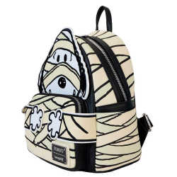 Mini Mochila de colección Loungefly Peanuts, Snoopy: Momia. Vestido como una momia, Snoopy luce un disfraz festivo para una divertida noche de Halloween. Atenúa las luces para ver su disfraz brillar en la oscuridad. Dimensiones: 22,7x11,4x26,7cm.