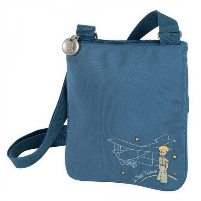 Bolso Bandolera Petit Jour, El Principito. Un práctico bolso bandolera para paseos con una gran apertura con cremallera, un bolsillo trasero y una correa ajustable. Interior: bolsillo para móvil y bolsillo con cremallera. Forro de tela bordada. Dimensiones: 19x21cm.