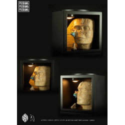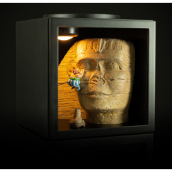 Cubo decorativo con figura de metal colección Pixi Pixirama Astérix: Obélix y nariz de la Esfinge. Esculpidas y pintadas a mano, las figuras de Pixi son auténticas piezas de colección. Edición limitada y numerada a 400 unidades con certificado de autenticidad. Dimensiones del cubo de madera lacada: 22,5x22,5x22,5cm.