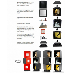 Cada cubo de la colección Pixirama es idéntico e intercambiable: encajan verticalmente sobre un eje giratorio para formar estructuras variadas, con ángulos de visión en constante cambio, animados por la iluminación proporcionada. Verdaderos objetos de diseño, Pixirama se convierte así en sorprendentes tótems luminosos que magnifican en volumen el genio creativo de los más grandes diseñadores.