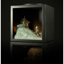 Cubo decorativo con figura de metal colección Pixi Pixirama Los Pitufos: Astro Pitufo. Esculpidas y pintadas a mano, las figuras de Pixi son auténticas piezas de colección. Edición limitada y numerada a 250 unidades con certificado de autenticidad. Dimensiones del cubo de madera lacada: 22,5x22,5x22,5cm.