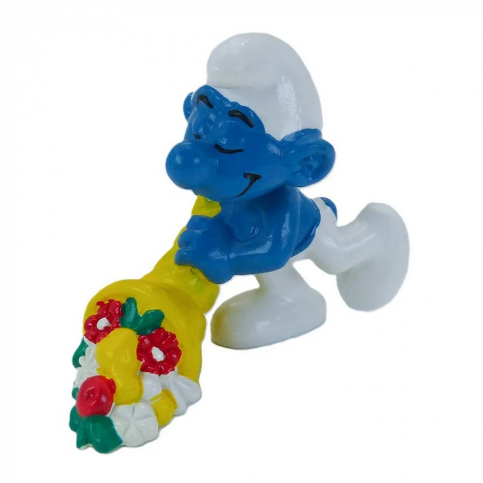 Figurita de PVC Schleich, Los Pitufos: Pitufo con cornucopia. Altura: 5,5cm.