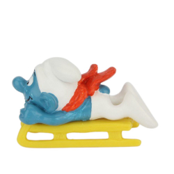 Figurita de PVC Schleich, Los Pitufos: Pitufo en el trineo. Altura: 5,5cm.
