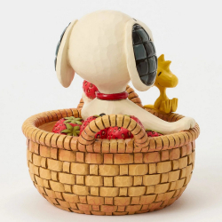 Figura de colección Enesco en resina by Jim Shore, Peanuts Snoopy con Woodstock: cesta de fresas. Snoopy y Woodstock rebosan de felicidad en esta conmovedora figura. Acurrucados en una cesta de fresas recién recogidas, celebran juntos la dulzura de la primavera. Diseñado por el galardonado artista y escultor Jim Shore. Altura: 12,5cm.