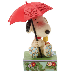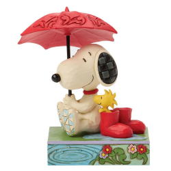 Figura de colección Enesco en resina by Jim Shore, Peanuts Snoopy con Woodstock: Paraguas. Snoopy y Woodstock encuentran consuelo bajo la lluvia en esta escena. Mientras Snoopy los cobija bajo un paraguas, Woodstock observa la suave lluvia primaveral, asomando el pico por sus botas. Diseñado por el galardonado artista y escultor Jim Shore. Altura: 13,5cm.