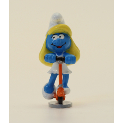 Pitufina con patinete, figurita Pixi de plomo colección Los Pitufos Origine código de circulación, realizada de manera artesanal esculpida y pintada a mano, una auténtica pieza de colección. Edición numerada y limitada a 450 ejemplares con certificado de autenticidad. Altura: 4,5cm.
