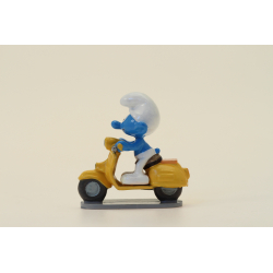 Pitufo en el scooter amarillo, figurita Pixi de plomo colección Los Pitufos Origine código de circulación, realizada de manera artesanal esculpida y pintada a mano, una auténtica pieza de colección. Edición numerada y limitada a 410 ejemplares con certificado de autenticidad. Altura: 4,6cm.