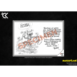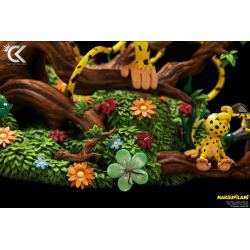 Figura de colección en resina y PU Cartoon Kingdom, la familia Marsupilami. Edición limitada y numerada a 275 unidades con certificado de autenticidad. Litografía exclusiva del autor Batem con nota acompañando su dibujo. Altura: 28cm.