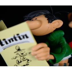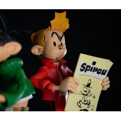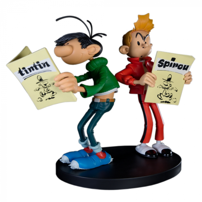Figura de colección Maris Jothieu en resina y metal: Tomás el Gafe con Spirou (Journal de Tintin). Edición limitada y numerada a 250 unidades con certificado de autenticidad. Altura: 31,6cm.