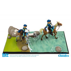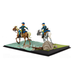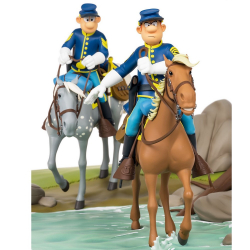 Figura de resina pintada a mano LMZ Collectibles Los Guerreras Azules: Blutch & Chesterfield a caballo. Edición limitada y numerada a 300 unidades con certificado de autenticidad. Altura: 23,50cm.