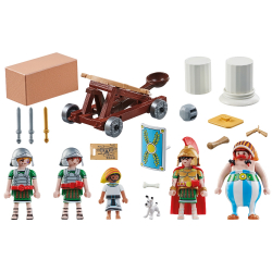 Las columnas y piedras pueden apilarse individualmente. Con catapulta de trabajo de los romanos. Los soldados romanos tienen cabezas reversibles con dos caras. Incluye a Obélix, Numerobis y Ideafix, que pueden equiparse con un mensaje para Cleopatra.