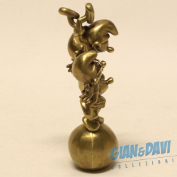 Figura de colección en bronce Pixi Los Pitufos: acróbatas. Edición limitada y numerada a 100 unidades con certificado de autenticidad. Caja de madera. Exclusividad Gian & Davi Collezioni. Altura: 19,4cm.