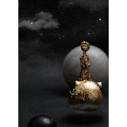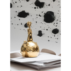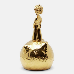 Figurita de colección Skultuna El Principito: El Principito en su planeta. Acero 316L de alta calidad bañado en oro. Altura: 11,3cm.