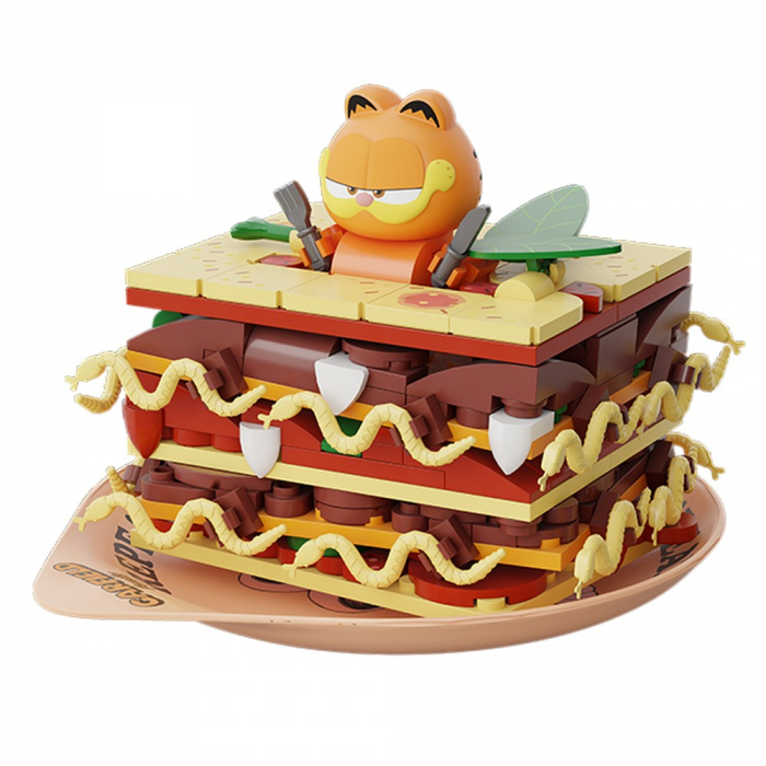 Set de construcción Garfield: comiendo lasaña. Creado por Pantasy. El set está formado por 205 piezas y requiere alrededor de 1 hora para su montaje. La edad mínima recomendada es de 6 años. Incluye un manual de instrucciones. Altura: 9cm.