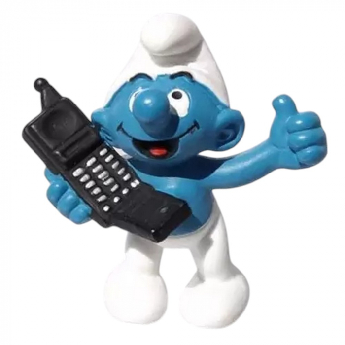 Figurita de PVC Schleich, Los Pitufos: El Pitufo con su teléfono móvil. Cada figura está hecha de plástico de alta calidad, meticulosamente detallada y pintada a mano. 5,5cm.