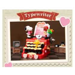 Set de construcción Peanuts, Snoopy: Máquina de escribir. Ispirado en la obra de Charles M. Schulz y creado por Pantasy. El set está formado por 332 piezas. La edad mínima recomendada es de 6 años. Incluye un manual de instrucciones. Presiona el botón rosa para que el papel de carta se levante, simulando el efecto de una máquina de escribir real. Altura: 18cm.