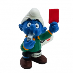 Figurita de PVC Schleich, Los Pitufos: Pitufo árbitro de fútbol con tarjeta roja. Cada figura está hecha de plástico de alta calidad, meticulosamente detallada y pintada a mano. 5,5cm.