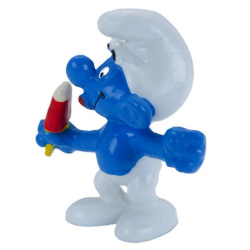 Figurita de PVC Schleich: El Pitufo disfrutando de un helads 1979. 5,5cm.