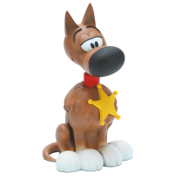 Plastoy presenta esta vistosa hucha en PVC dentro de su colección de figuras basadas en famosos personajes del mundo de Lucky Luke. Rantanplan. Altura: 15cm.